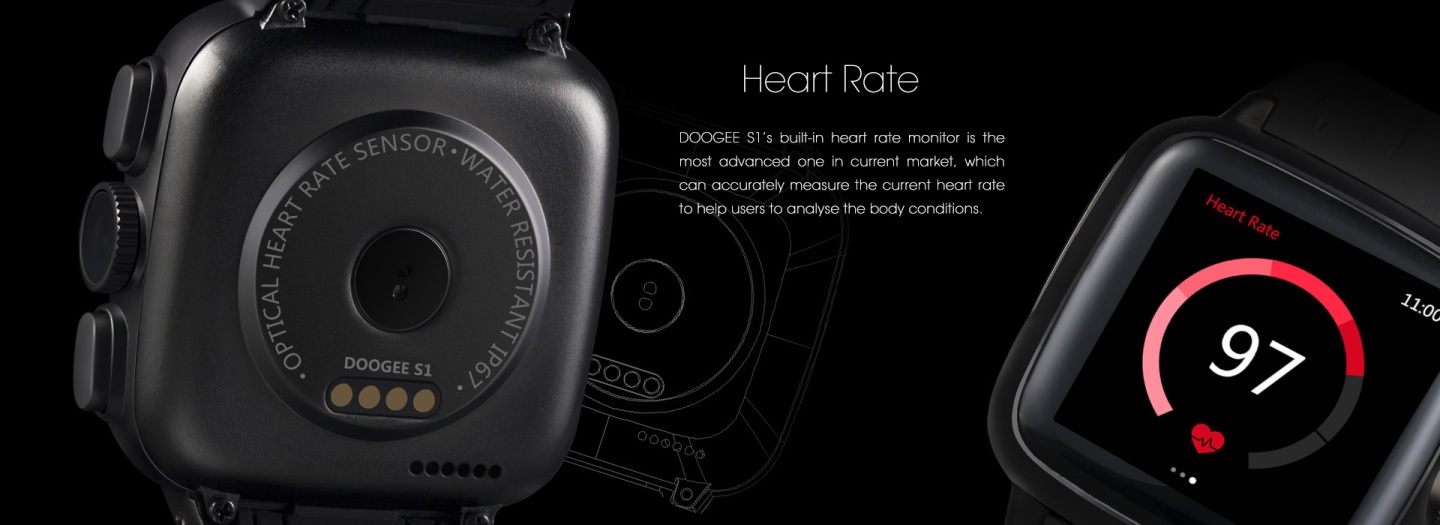 Odporny na wnikanie wody oraz pyłu (IP67) SmartWatch posiadać będzie między innymi krokomierz, monitor snu, licznik spalonych kalorii, a także informuje o zdarzeniach, w tym wiadomościach, czy też połączeniach głosowych. Na wyposażeniu DOOGEE S1 nie zabraknie czujnika tętna. Co więcej akcesorium umożliwi wykonywanie połączeń głosowych. Wbudowany akumulator o pojemności 600 mAh umożliwić ma do trzech dni ciągłej pracy. Zegarek współpracować będzie z urządzeniami pracującymi pod kontrolą Androida i iOS.