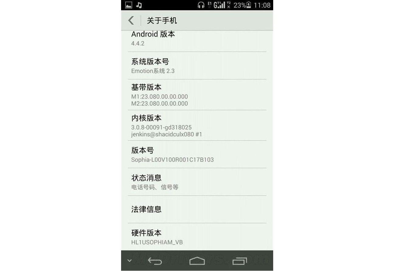 Redaktorzy serwisu MyDrivers rozwiali właśnie nasze wątpliwości, publikując zrzut ekranu, jednoznacznie określający, na jaką wersję platformy wyszukiwarkowego giganta mogą liczyć osoby zainteresowane modelem Huawei Ascend P7. Teraz już wiemy, że w ręce użytkowników oddany zostanie smartfon z najnowszą odsłoną Androida – 4.4.2 KitKat. O dziwo słynna nakładka graficzna – EmotionUI, figuruje w wersji 2.3. Niestety zmiany, jakie zostały poczynione względem EmotionUI 2.0, nie są znane.