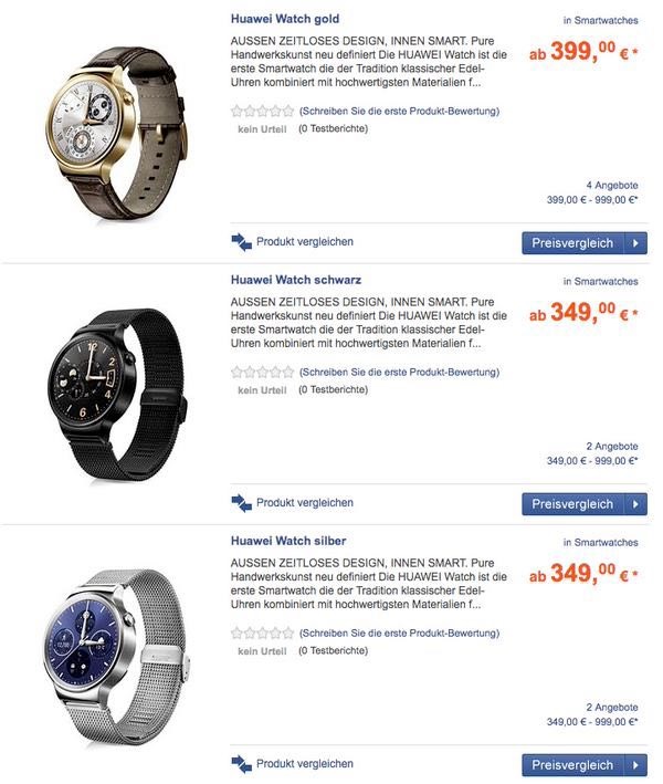 Srebrna oraz czarna wersja Huawei Watch z bransoletą wyceniona został na 349 euro, natomiast osoby planujące zakup złotego wariantu ze skórzanym paskiem muszą przygotować się na wydatek 399 euro.