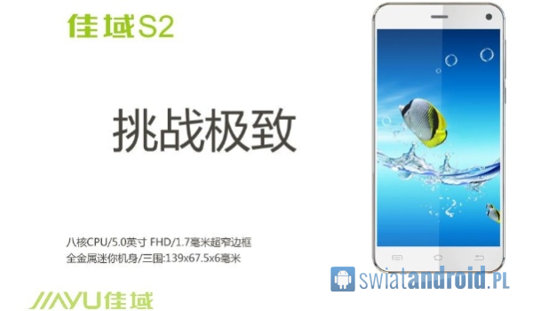Według najnowszych doniesień, JiaYu S2 będzie napędzany przez ośmiordzeniowy procesor MediaTek MT6592 o maksymalnej częstotliwości taktowania 2 GHz. Z kolei obraz ma być wyświetlany w rozdzielczości Full HD (1920 x 1080 pikseli) na 5-calowej matrycy, występującej w towarzystwie ramek bocznych o grubości 1,7 mm. Wymiary smartfonu to: 139 x 67.5 x 6 mm.