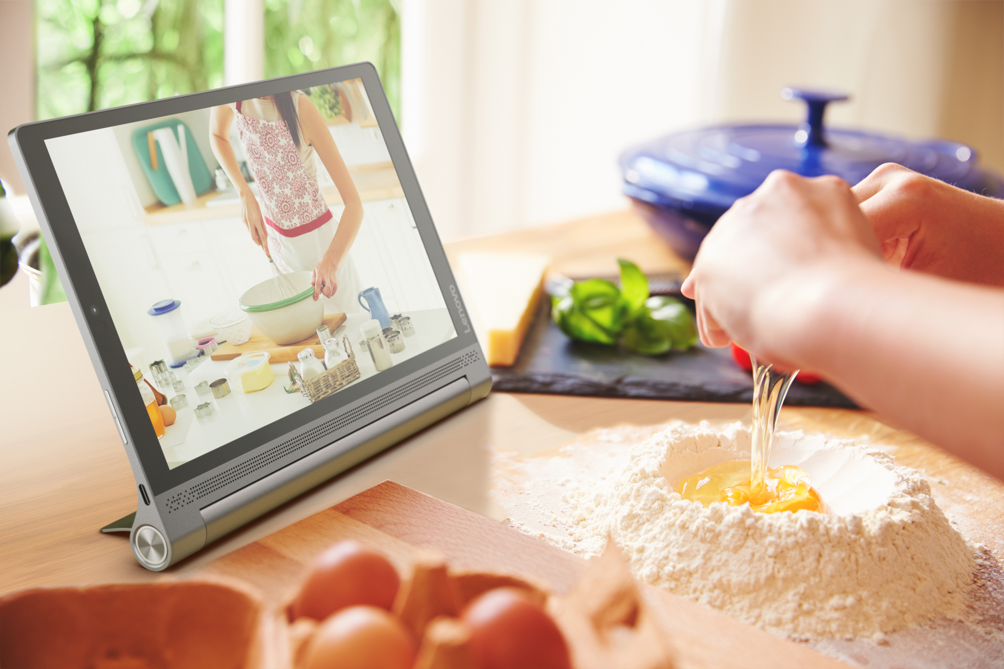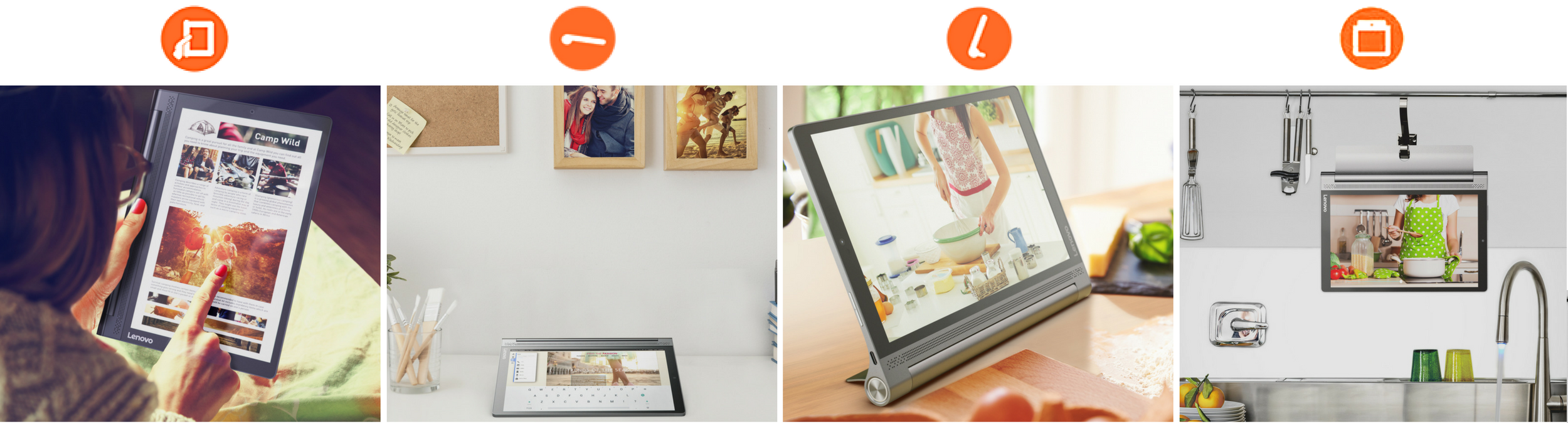Oglądanie, czytanie, pisanie, słuchanie muzyki, odpisywanie na maile, wideorozmowy, gotowanie, przeglądanie internetu, czatowanie z przyjaciółmi – to wszystko staje się proste i wygodne z Lenovo Yoga TAB3 Plus. Specjalna konstrukcja z funkcjonalną podstawką umożliwia korzystanie z tabletu na cztery różne sposoby. Według badań przeprowadzonych przez Lenovo, 76% użytkowników korzysta z tabletów w łóżku, 67% na kanapie, a 58% przy stole lub biurku. W każdym z nich trzymają lub ustawiają urządzenie na swój własny sposób, konstruując prowizoryczne podpórki i stelaże, by móc wygodniej obejrzeć film, wyświetlić dziecku bajkę, czy skorzystać z niego podczas gotowania.