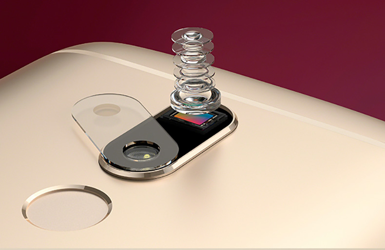 Na tylnym panelu Moto M ulokowany został 16-megapikselowy aparat z PDAF, występujący w towarzystwie podwójnej, dwutonowej diody doświetlającej LED. Pod nim natomiast umiejscowiony został czytnik linii papilarnych. Ponadto smartfon wyposażono w 5,5-calowy wyświetlacz Super AMOLED prezentujący obraz w rozdzielczości Full HD (1920 x 1080 pikseli), który pokryty został taflą zakrzywionego szkła 2.5D.
