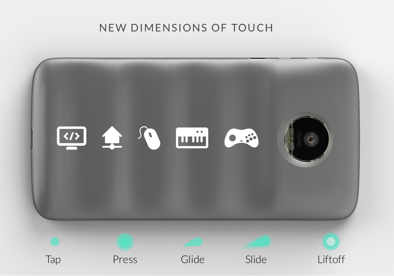 Dzięki programowi Moto Mods Developer może okazać się, że twórcą najbardziej przełomowych innowacji na rynku smartfonów będzie na przykład nasz uzdolniony kolega ze studiów. Dużą szansę na to ma zespół tworzący prototyp modułu obsługującego dotyk 5D – TIMEWAVE Mod. Technologia rozróżnia 5 różnych sposobów dotyku dla bardziej intuicyjnej nawigacji oraz obsługi różnych, programowalnych funkcji – surfowania w sieci, obsługi multimediów, zarządzania powiadomieniami itp. Dotyk 5D jest kompatybilny ze wszystkimi treściami wyświetlanymi na ekranie i dodatkowo może służyć jako pilot do zarządzania urządzeniami w systemie smart home. Subtelne podświetlenie modułu pełni funkcję powiadomień i co więcej, uczy się zachowań użytkownika pomagając mu w realizacji jego dziennych celów. Oprogramowanie i interfejs zostały stworzone w odniesieniu do koncepcji 5 żywiołów: ognia, wody, ziemi, powietrza i eteru.
