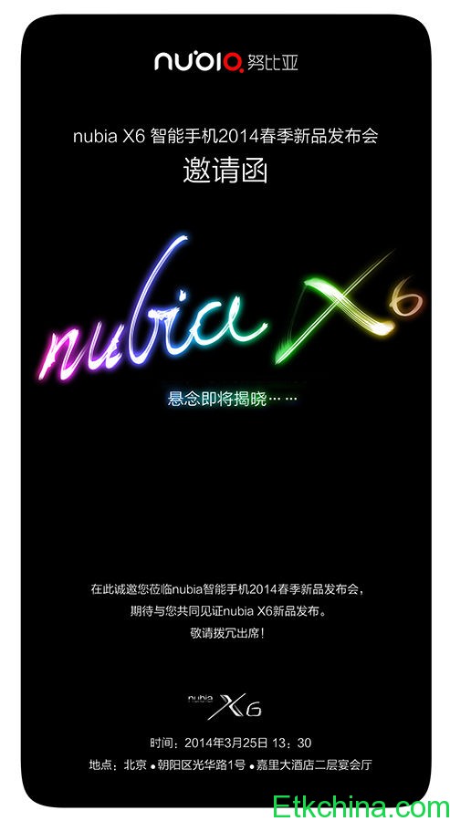 Premiera Nubii X6 odbędzie się 25 marca w Pekinie. Co ciekawe na ten sam dzień została zaplanowana konferencja firmy HTC, która chce zaprezentować całkiem nowego HTC One. Na zrzutach ekranu widać również, że smartfon ten będzie wspierać łączność WCDMA oraz LTE. Nie wiadomo jakiego rodzaju będzie to łączność 4G, ale prawdopodobnie pojawi się wersja na rynek chiński oraz międzynarodowy.