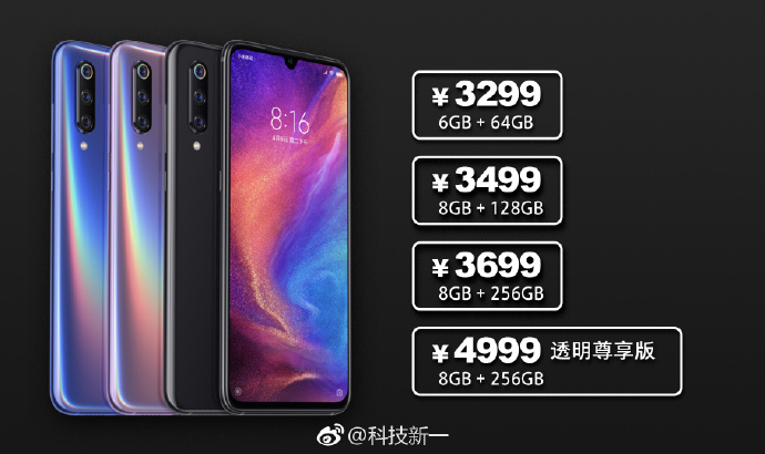 - Xiaomi Mi 9 z 8 GB RAM i 256 GB miejsca na dane – 3699 juanów
