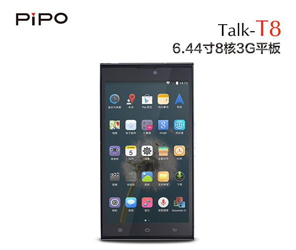 PIPO Talk T8 jak już wyżej wspominałem został wyposażony w dosyć duży, 6,44-calowy ekran OGS o rozdzielczości FHD. Jednostką napędową jest ośmiordzeniowy MediaTek MT6592, który taktowany jest częstotliwością 1,7 GHz. Procesor wspomagany jest przez 2 GB pamięci typu LPDDR3. Jak wiadomo istnieją dwie wersje tego urządzenia – jedna wyposażona w 16 GB pamięci wbudowanej, druga natomiast posiada 32 GB. Na wyposażeniu nie zabrakło porządnego 13-megapikselowego aparatu głównego oraz 2-megapikselowego przedniego.