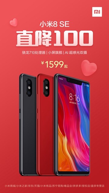 Do tego wszystkiego Xiaomi obniżyło także cenę modelu Mi 8 SE. Wariant 6GB RAM + 64GB kosztuje teraz 1599 juanów zamiast 1699 juanów. Wersja 128G jest sprzedawana po cenie 1699 juanów. Nowa cena dotyczy wszystkich wariantów kolorystycznych.