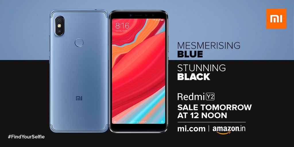 Presenting the 16MP AI-Selfie Superstar, Redmi Y2 in two new colour variants – Black and Blue. Sale starts at 12 noon tomorrow on https://t.co/cwYEXeds6Y and @amazonIN. #FindYourSelfie pic.twitter.com/zHS1oVNL6I