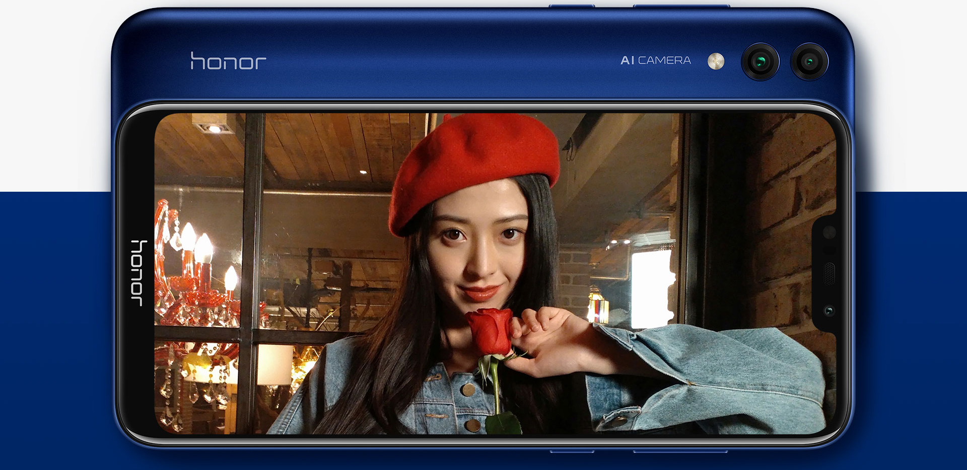 Na tylnym panelu Honor 8C ulokowany został podwójny aparat główny (13 Mpix + 2 Mpix). Nie zabrakło także wsparcia w postaci pojedynczej diody doświetlającej. Co więcej do dyspozycji użytkownika jest funkcja inteligentnego rozpoznawania scenerii i efekty AR. W przypadku aparatu głównego zastosowano przesłonę obiektywu f/1.8, natomiast aparat dodatkowy to f/2.4. Aparat rejestruje materiały wideo w rozdzielczości do 1080p.